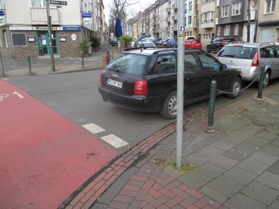 Ey Gladdi! Mit deinem Auot behinderst du die Fußgänger. Schon mal dran gedacht, was passieren kann, wenn Fußgänger mit Radfahrer kollidieren, weil die Fußgänger komplett über den Fahrradweg gehen müssen? Nein, bisher noch nicht? Kein Wunder, wenn man nur an sich selber denkt!